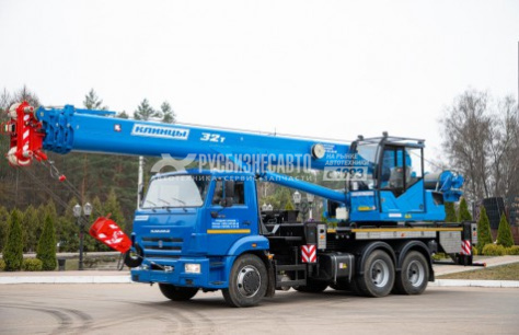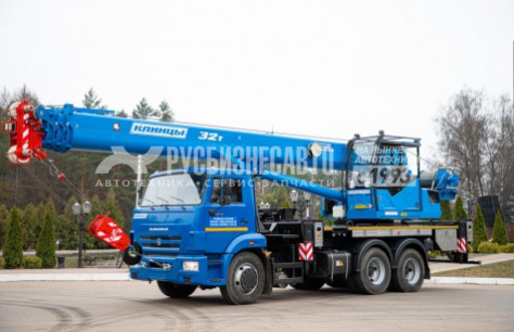 Грузоподъемность 32т, шасси КАМАЗ-65115, стрела 33 м., в базовой комплектации противовесы 1т. + 1,5 т. (перевозятся в составе крана), гарантия на кран 18 месяцев или 1000 м/ч