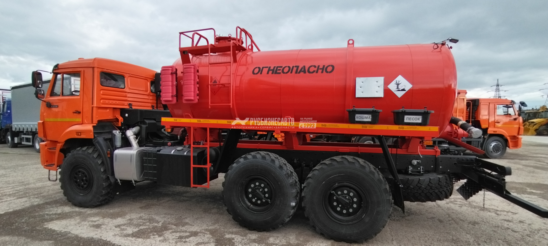 - Надпись «ОГНЕОПОСНО», светоотражающая маркировка.