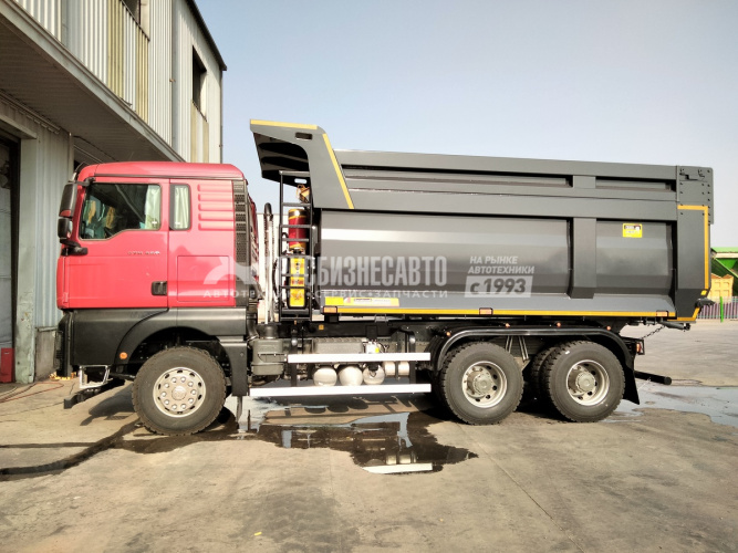 ● Габаритные размеры: - Длина, мм - 8572 - Ширина, мм - 2496 - Высота, мм - 3754 - Колесная база, мм - 2022/1850 ● Двигатель MC13.48-50 - Максимальный крутящий момент, Нм - 2300 - Экологический стандарт Евро 5 - Топливная система Common Rail ● Коробка передач - АКПП ZF12TX2621TD с ретардером ● Кабина серии С7H MAX-P: - Одно спальное место - Четырехточечная подвеска кабины с амортизатором - Сиденье водителя с пневмоподвеской - Кондиционер (климат-контроль) - Функция Bluetooth - Светодиодные дневные ходовые фары - Складной ключ центрального замка двери - Кабина серии MAN TG соответствует  стандартам RCER29 по безопасности ● Самосвальный кузов: - Размер кузова: 5300*2300*1500+500мм - Днище - 7мм - Борт - 5мм - Гидрооборудование Binotto/HYVA - Подогрев кузова выхлопными газами - Лебедка подъема/опускания запасного колеса - Автоматические замки заднего борта