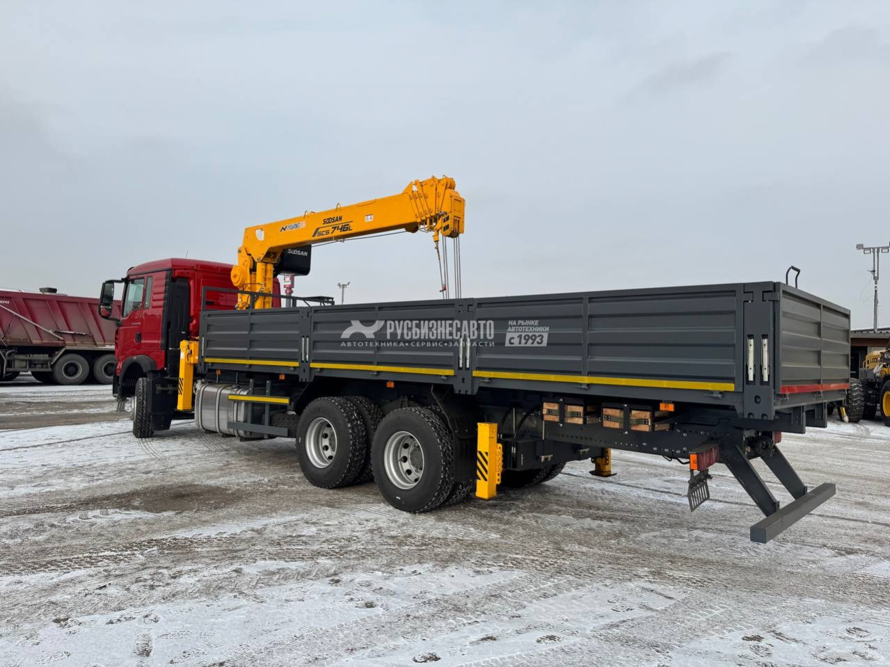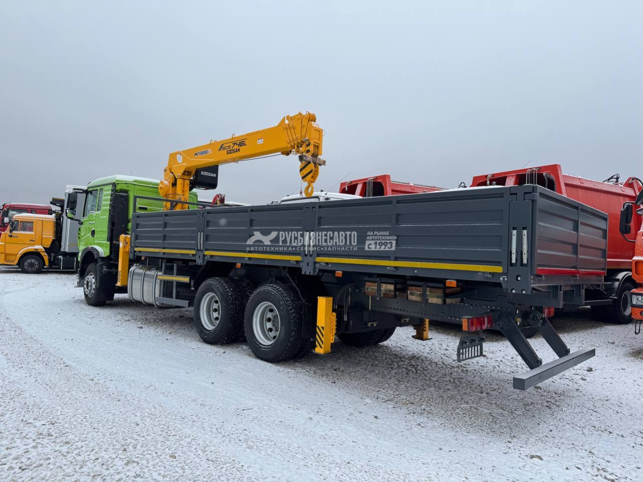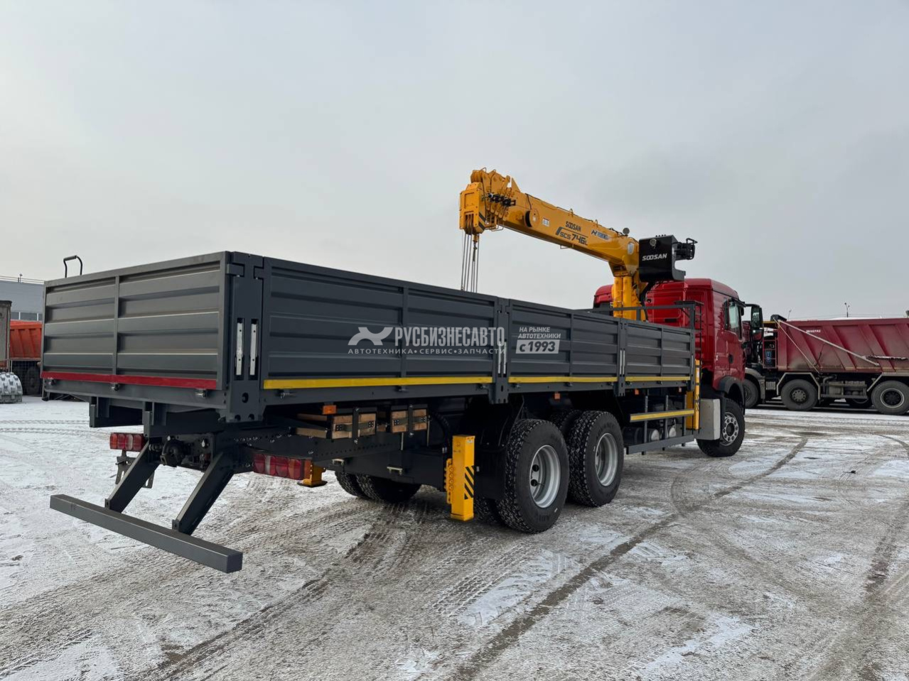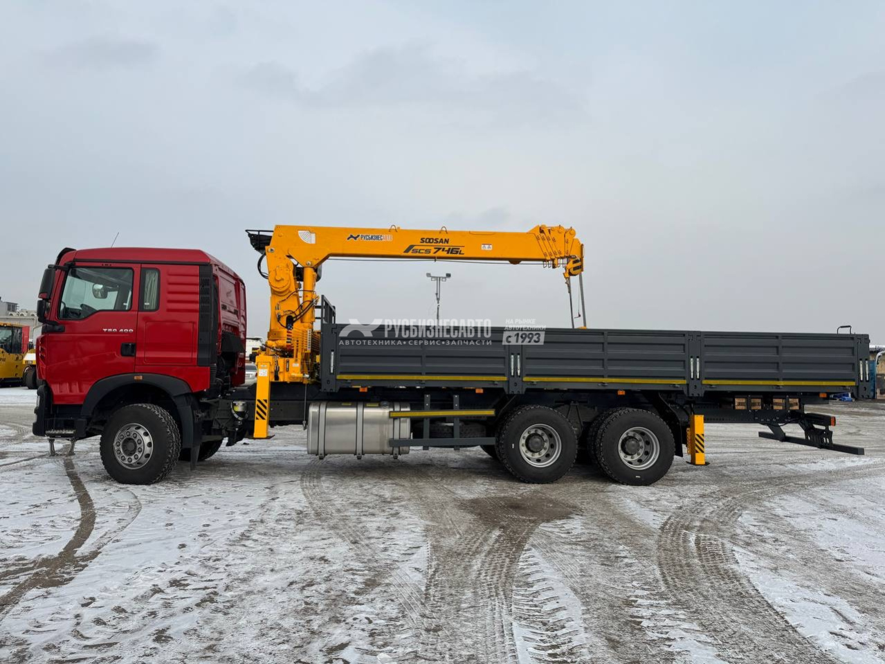 КМУ HOWO T5G (6*4, 400л.с., Евро-5) + SOOSAN SCS746L верх.упр. + борт сталь 8,0м. РМЗ