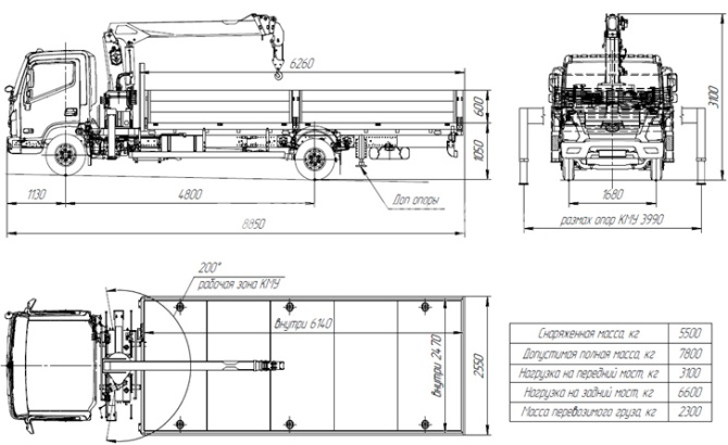 Технические характеристики КМУ HYUNDAI MIGHTY EX8 + Soosan SCS334 нижн. упр. + борт алюминий 6200*2550*600мм.