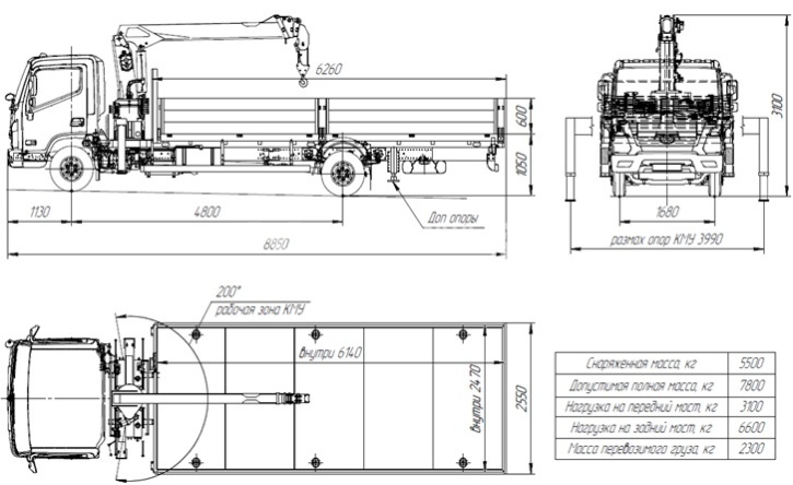 Масса снаряжённого автомобиля, кг 5500