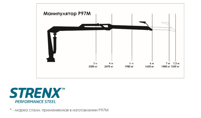 – Максимальный вылет стрелы: 7,3 м