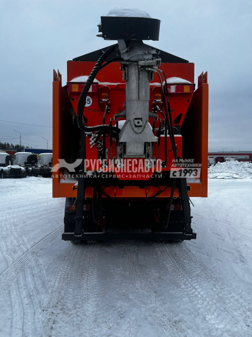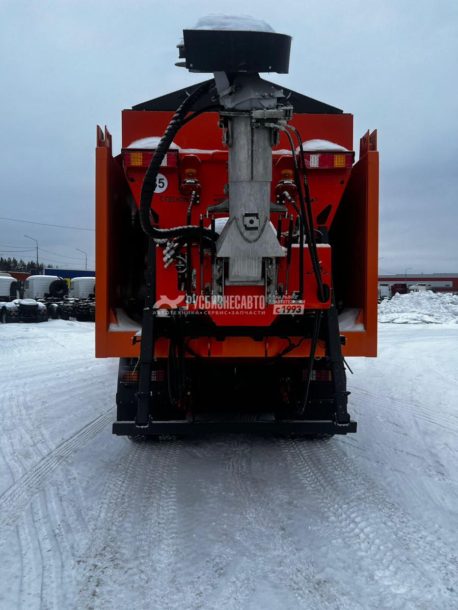 - Отбор мощности от ДВС (сохранность КПП; увеличенный КПД; улучшенную управляемость ТС во время работы с навесным оборудованием;  увеличеный срок службы автомобиля; повышенную безопасность дорожного движения). - Кузов бункера объемом 11 куб/м. - Необслуживаемый транспортер с двумя тяговыми конвейерными, безвтулочными цепями   и приварными пластинчатыми скребками Количество скребков: 63 шт. - Ручное управление шириной и плотностью посыпки ПГМ, позволяющее осуществлять раздельное, независимое управление транспортером и разбрасывающим диском из кабины водителя во время движения, не затрачивая время на остановку. - Система асимметрии с гидравлическим приводом. - Плужное оборудование с гидроповоротным отвалом 3,4 м. - Средняя подметальная щетка 2,34 м. - Быстросъемное поливомоечное оборудование с напорными соплами и оборудованием для мойки дорожных знаков. - Коническо-цилиндрический редуктор Berma RT 500. - БРС. - Задние светодиодные фонари.