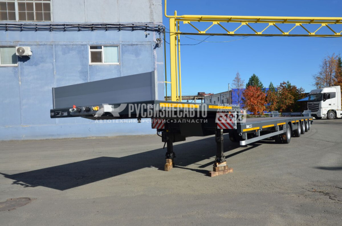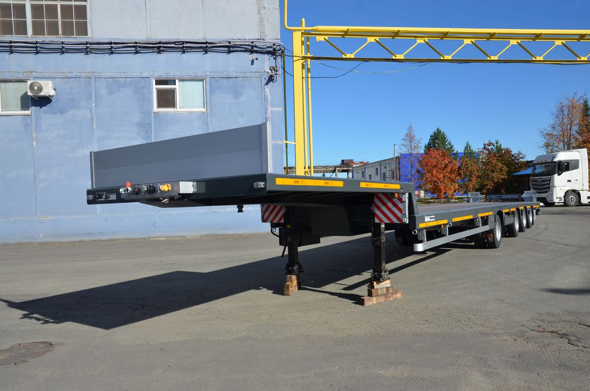 | Дополнительное оборудование | Противооткатные упоры; Алюминиевый борт на гусаке; Опорное устройство; Знаки «негабарит»; Инструментальный ящик; Ящик для укладки приставных трапов под рамой |
