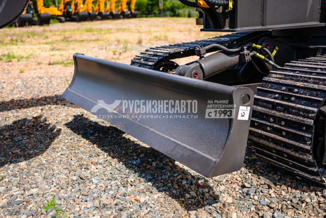 - Оборудован бульдозерным отвалом, увеличивающим устойчивость при выполнении работ. Также позволяет использовать машину для засыпки или планировки.