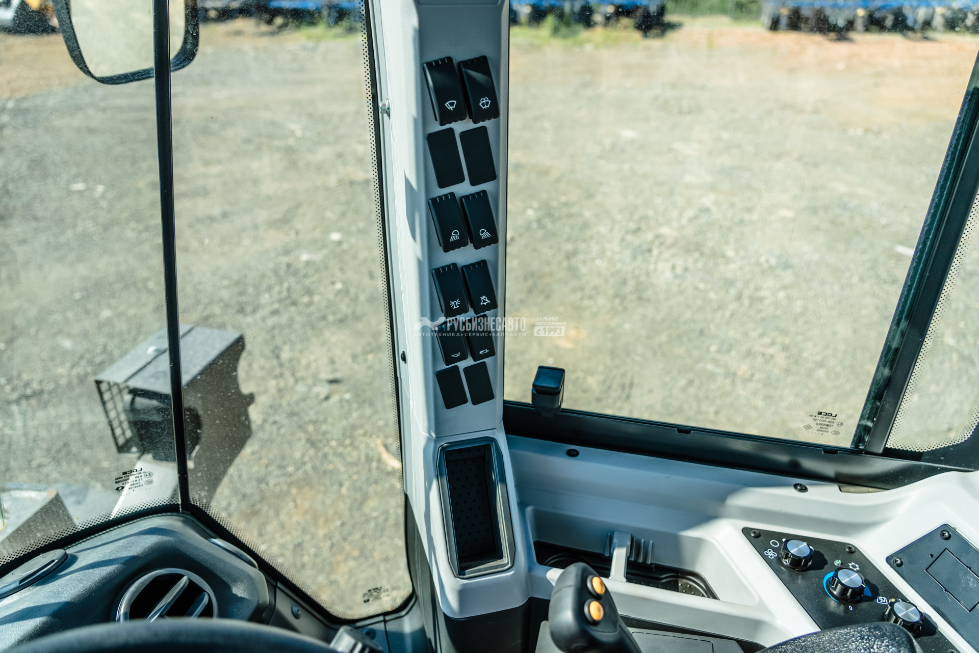 - Аудиосистема. Новая приборная панель с ЖК дисплеем, переключатели и кнопки расположены на стойке кабины для удобства управления, дополнительные отсеки для хранения мобильного телефона и прочих вещей, охлаждаемый бокс, сдвижное окно с фиксатором.