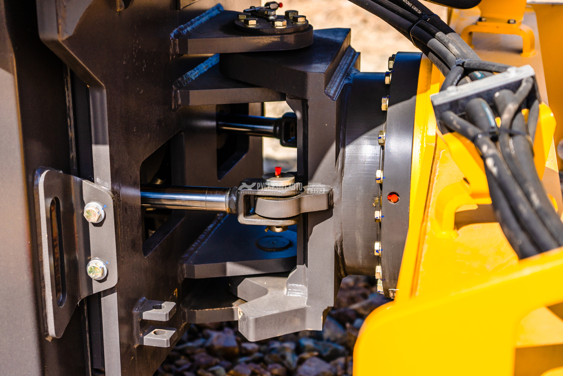 - В шарнирном сочленении полурам использован поворотно-опорный подшипник. Благодаря этой конструкции передняя полурама имеет угол качания 12°, относительно задней.