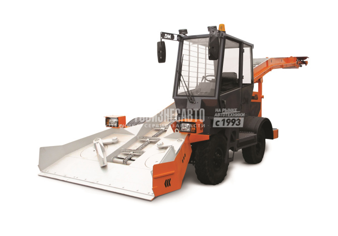 Снегоуборочная машина DM-09 с лаповым питателем и скребковым транспортером предназначена для погрузки предварительно собранного в валы и кучи снега в транспортные средства.