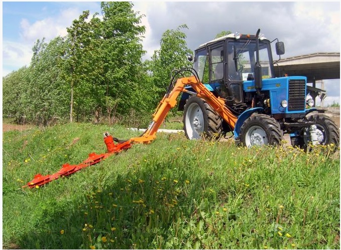 Косилка-манипулятор навесная роторная К-78М эффективно используется в работе на автодорогах (обочинах, кюветах, откосах, каналах, труднодоступных местах, за барьерными ограждениями и т.д.).
