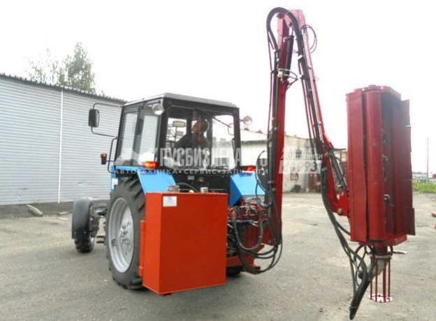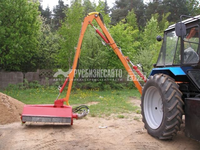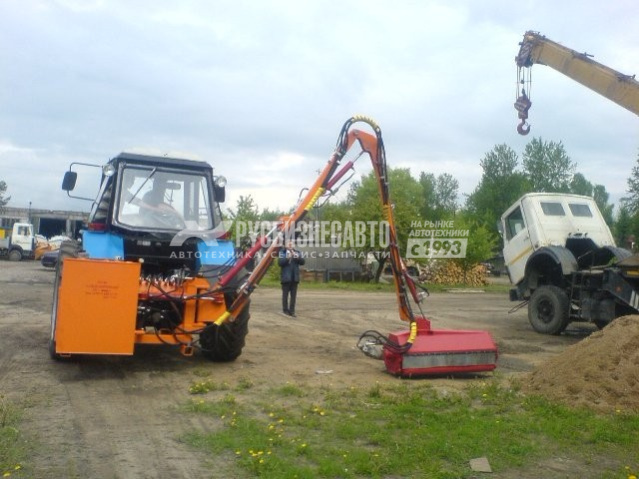 Благодаря наличию в конструкции манипуляторной стрелы роторная косилка на трактор МТЗ может использоваться на участках небольшой площади со сложным рельефом. Единственное ограничение – не допускается наличие крупных посторонних предметов: камней, металлолома и прочего. Скорость движения режущей насадки такова, что скошенный материал перерабатывается в мелкие фракции, которые несложно удалить по окончании работ по благоустройству участка.