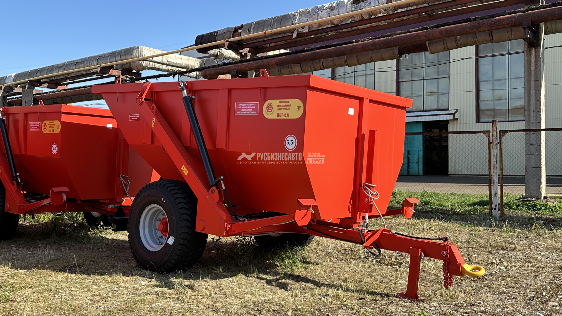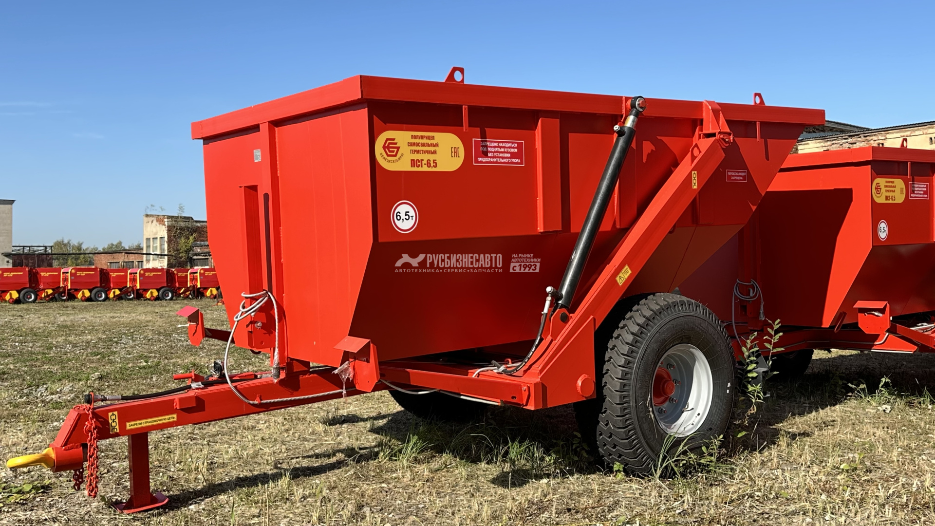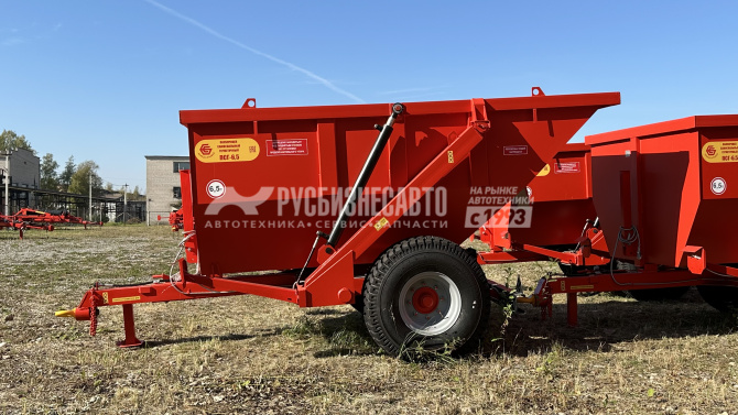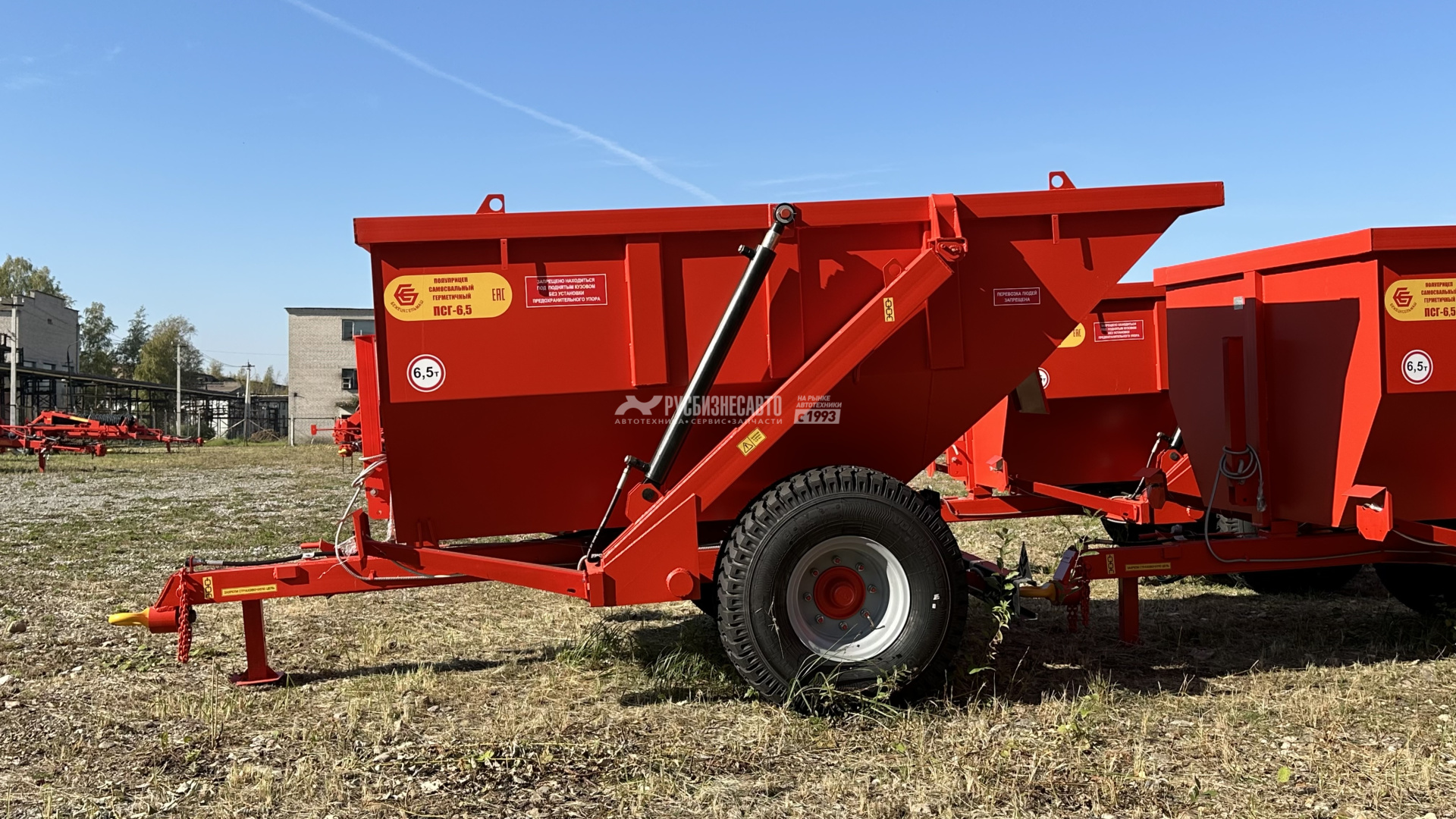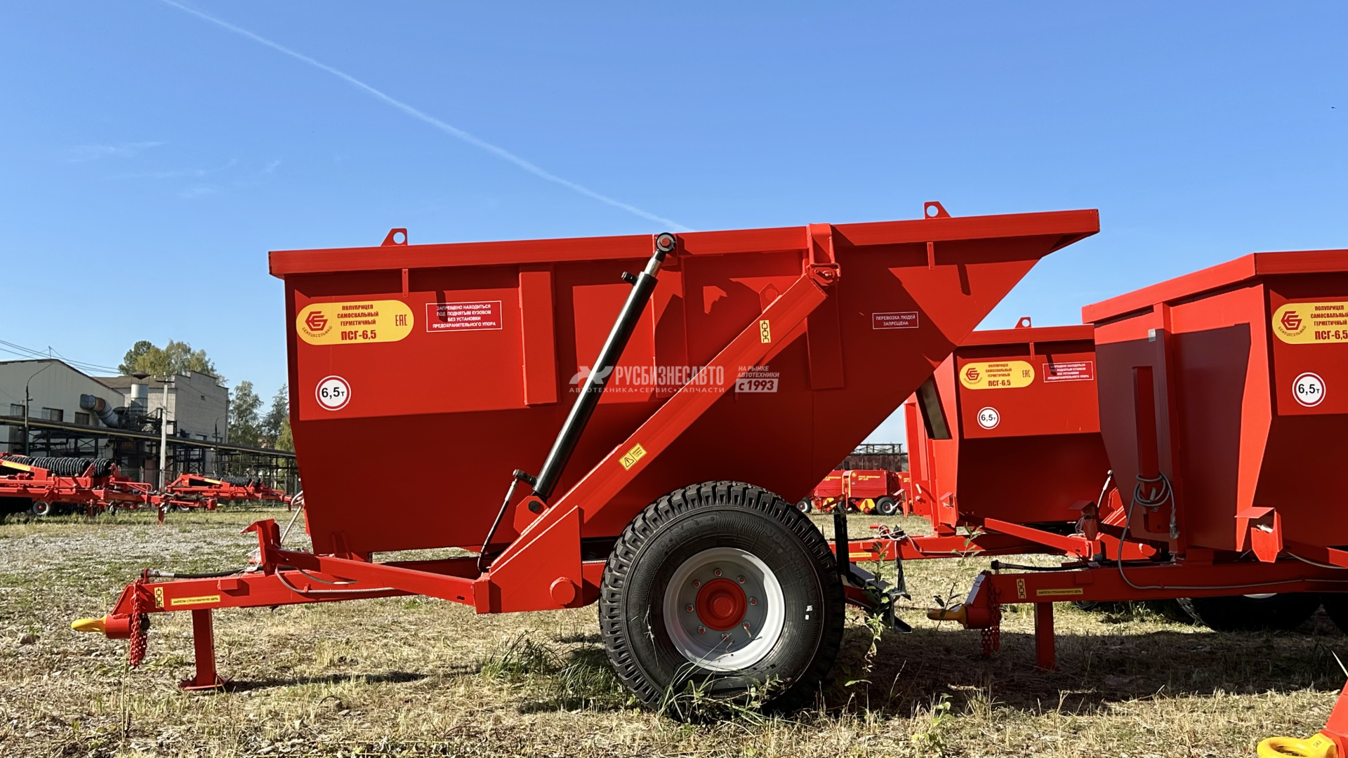 6.5Полуприцеп самосвальный герметичный является универсальным,всесезонным транспортным средством и предназначен для перевозки ивыгрузки назад сыпучих, жидких и полужидких сельскохозяйственных истроительных грузов. Снабжен двумя гидроцилиндрами подъема кузова,работающими от гидросистемы трактора. Толщина металла составляет 4 мм.Комплектуется итальянским мостом.